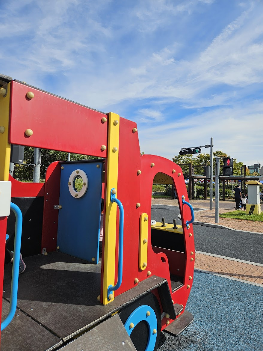공원 내에는 놀이터가 두 곳 조성되어 있는데, 한 곳은 안전체험 컨셉으로 자동차 모양의 기구들과 실제로 동작하는 신호등이 있다. 아이들이 꽤 좋아하는 편