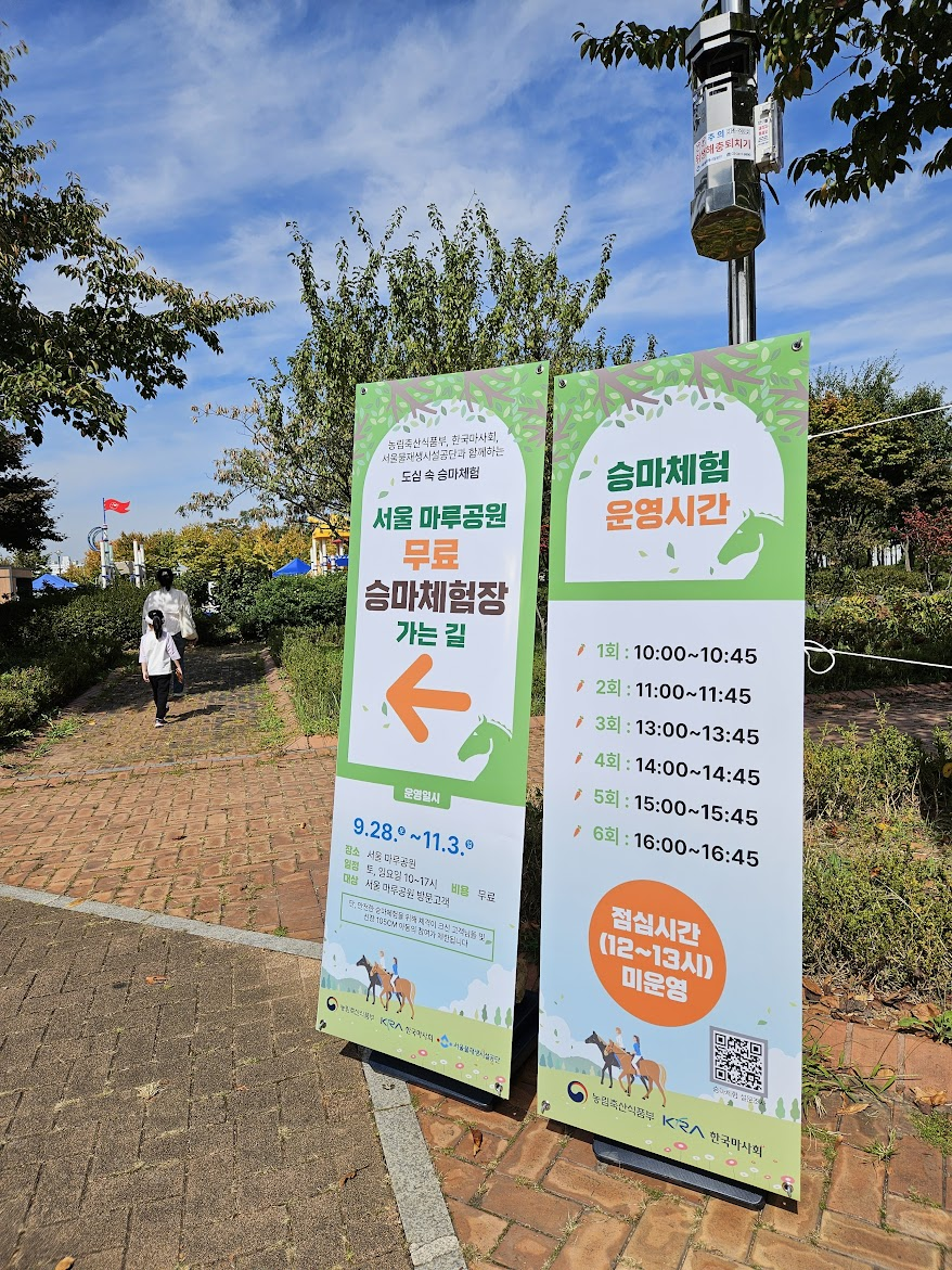 서울 대청역 근처 마루공원에서 매주 토요일과 일요일에 승마 체험을 할 수 있다.